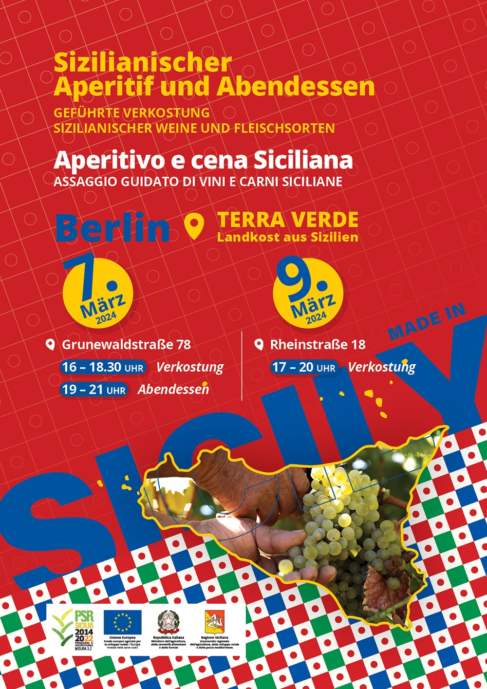 Il 7 marzo con una serata all’insegna del Made in Sicily avviamo la collaborazione con Terra Verde, i punti vendita siciliani a Berlino di Nicolò Sparacino.